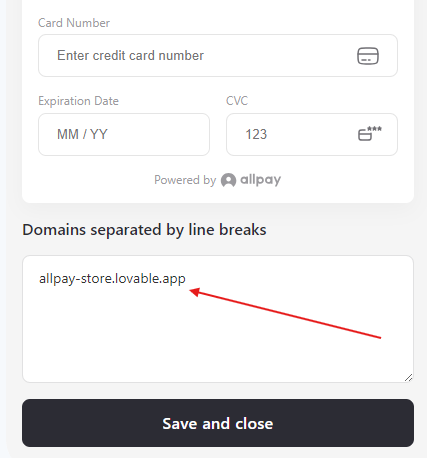 Note that some payment methods may not support Hosted Fields. Implement Allpay Hosted Fields according to this documentation: https: //www.allpay.co.il/en/help/hosted-fields